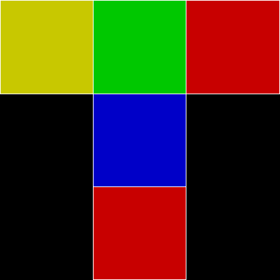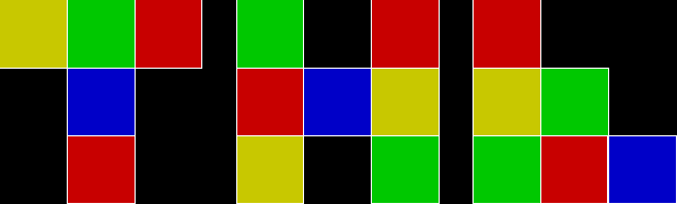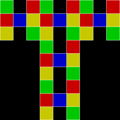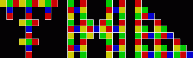 Now examine a colour version of the first line in stage 1 of the fractalphabet: