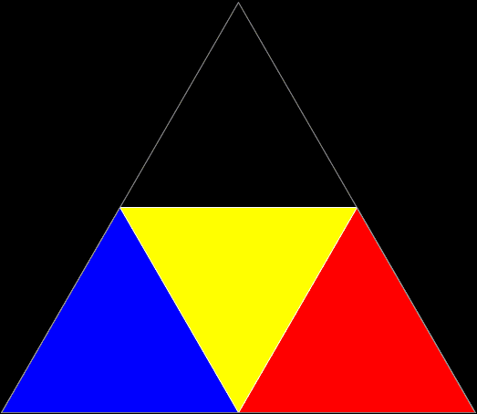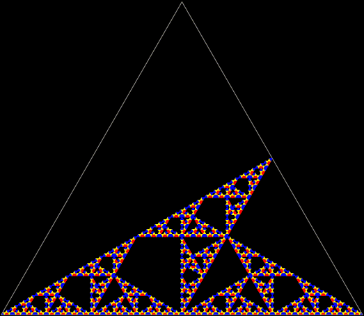 But you can’t add a fourth point, d, in 2d such that (a,b,c,d) are equidistant. So let’s move to 3d for the points (a,b,c,d). Begin with point d in the center of the triangle formed by (a,b,c), where it will have the co-ordinates (0.5,√3/6,0) = (0.5,0.28867513…,0) and will be equidistant from (a,b,c). But d will be nearer to (a,b,c) than they are to each other. However, if you move d in the third dimension, it will be moving equally away from (a,b,c). So where in 3d will d be 1 unit from (a,b,c)? By analogy with 2d, the third co-ordinate for d will satisfy the generalized Pythagorean equation √(1 – 0.5^2 – (√3/6)^2). And √6/3 = √(1 – 0.5^2 – (√3/6)^2) = 0.81649658… So point d will have the co-ordinates (0.5,√3/6,√6/3) = (0.5, 0.288675135…, 0.816496581…).